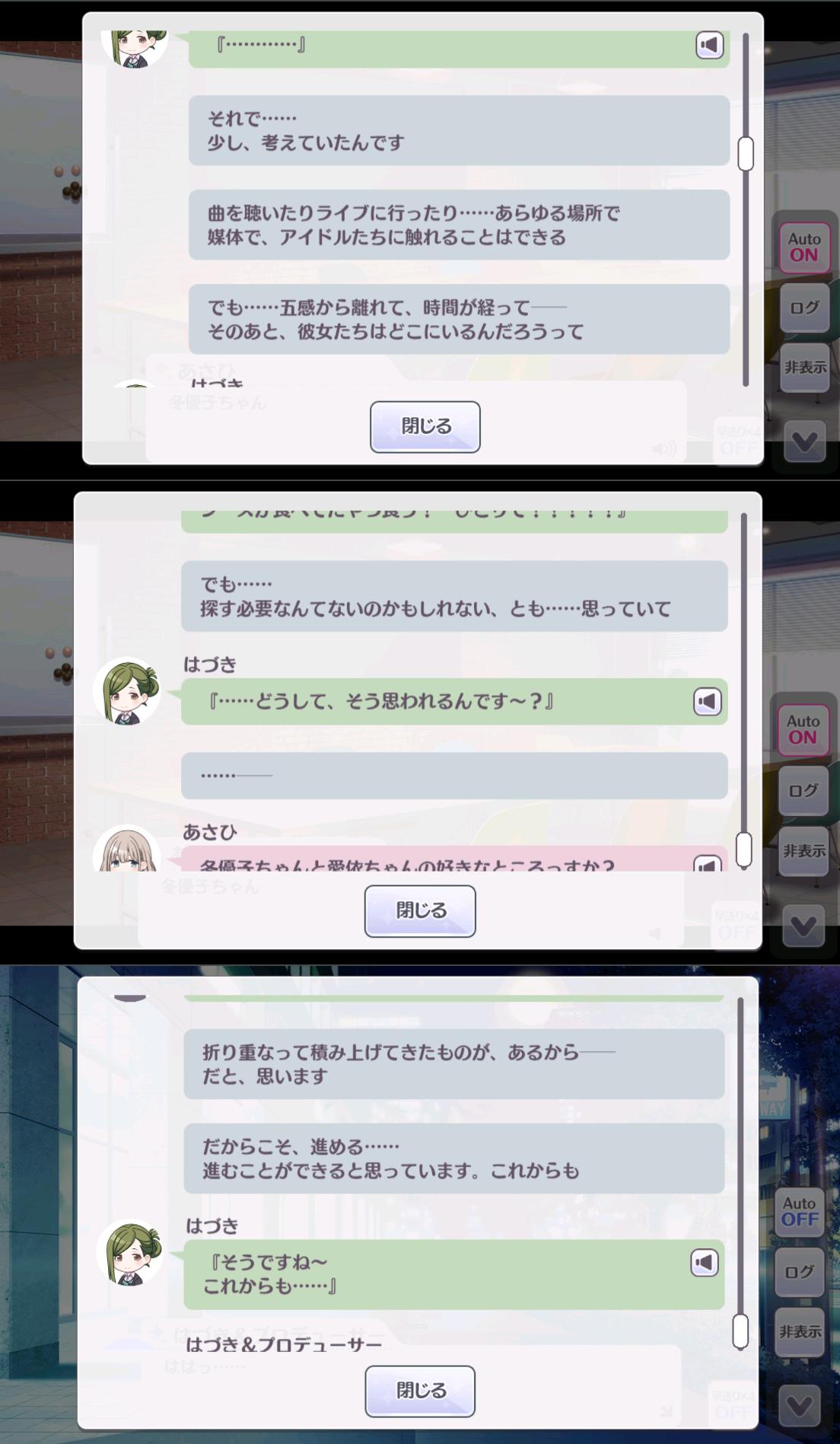 | … | 8826/04/12(日)00:49:34No.1419486648+多分だけど愛依ちゃんの衣装は愛依ちゃんの意見結構入ってる気がする |