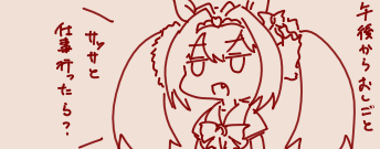 | … | 23326/04/12(日)08:00:41No.1419530601+>お仕事はトレーナーなので午後もダスカさん一緒じゃないんですか? |