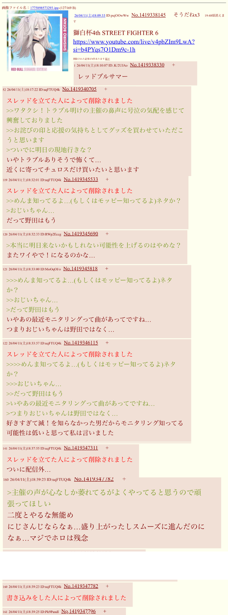 | … | 4126/04/12(日)09:32:24No.1419552410+>2 (2) |