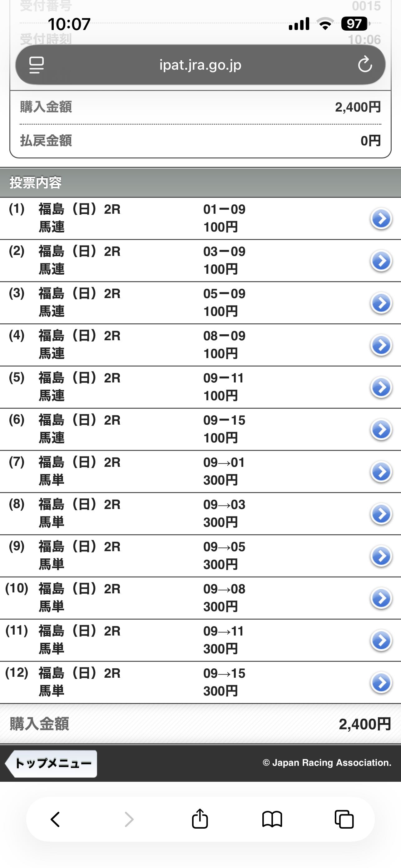 | … | 4126/04/12(日)10:04:26 ID:2OwXEgLENo.1419562772+メイショウナナユキフクショウ10万円成功です!!!!! |