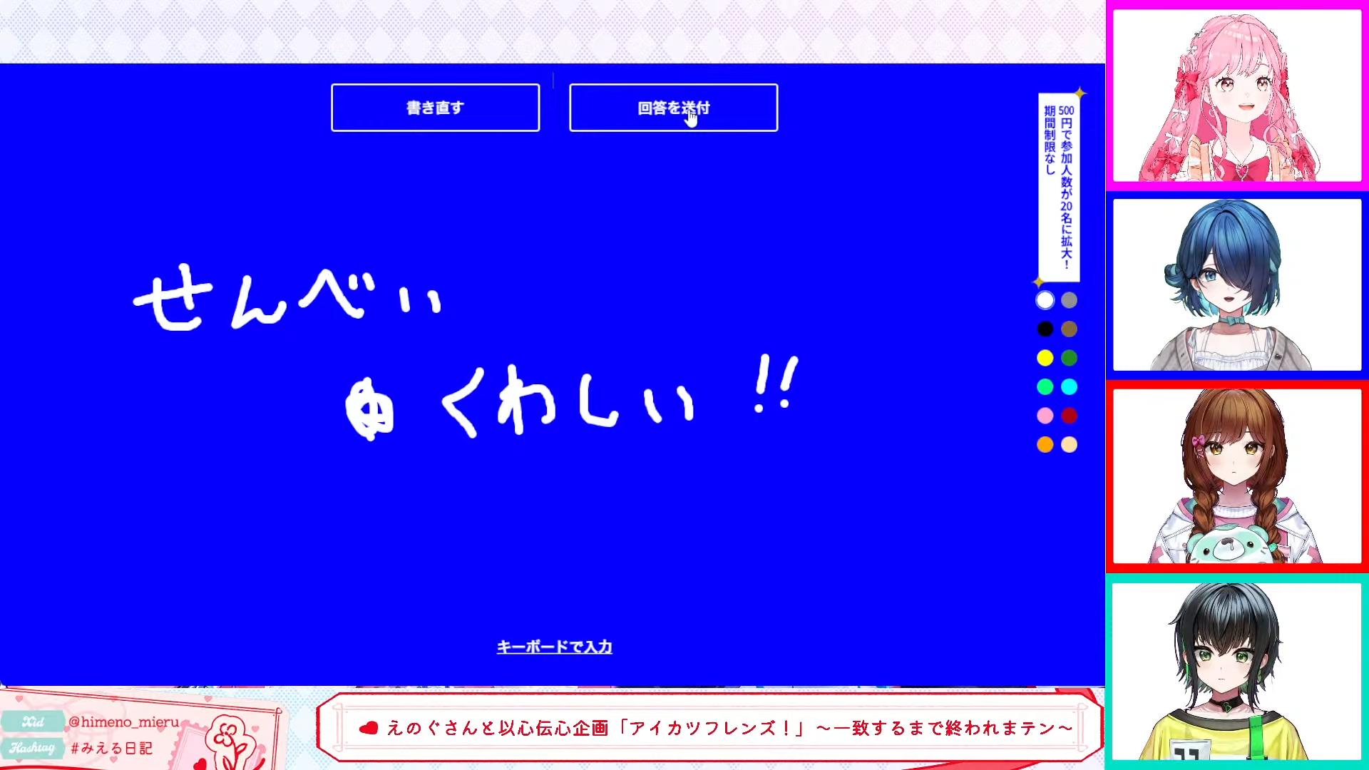 【コラボ】えのぐさんと以心伝心企画「アイカツフレンズ!」〜一致するまで終われまテン〜【アイカツアカデミー!姫乃みえる/鈴木あんず/白藤環/日向奈央】