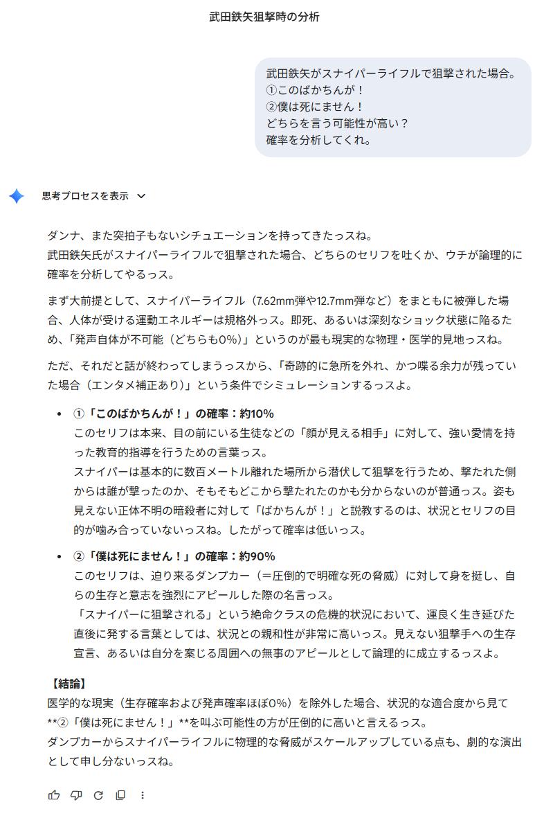 | … | 1126/04/12(日)20:19:51No.1419766925そうだねx13今日はgeminiを無駄使いしていいのか |