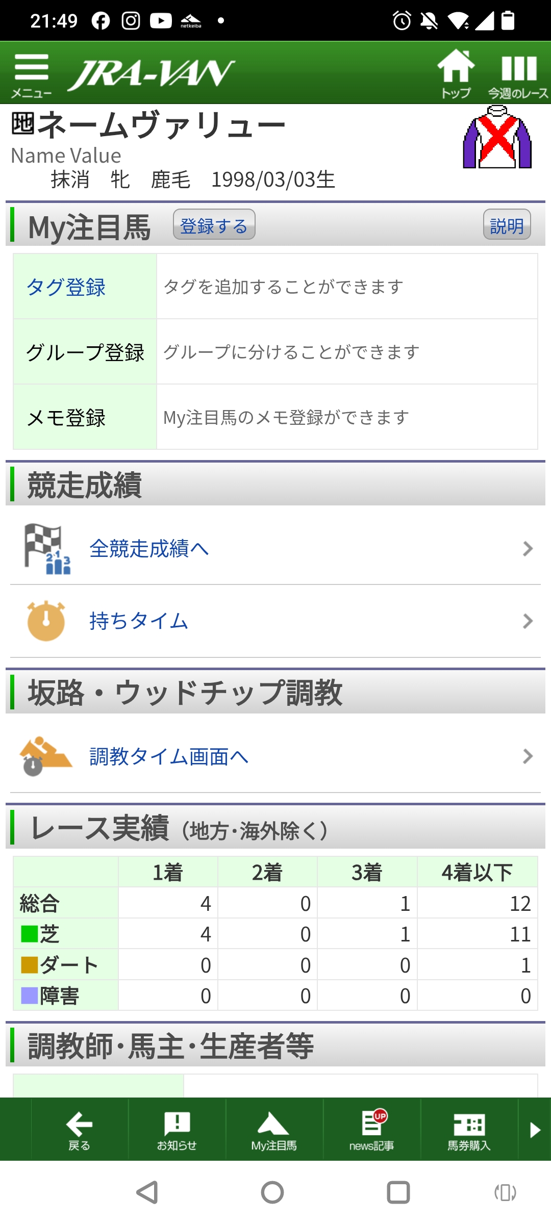 | … | 2626/04/12(日)22:00:45No.1419815128+>>帝王賞勝つまでは中央芝で4勝したネームヴァリューでぇ… |