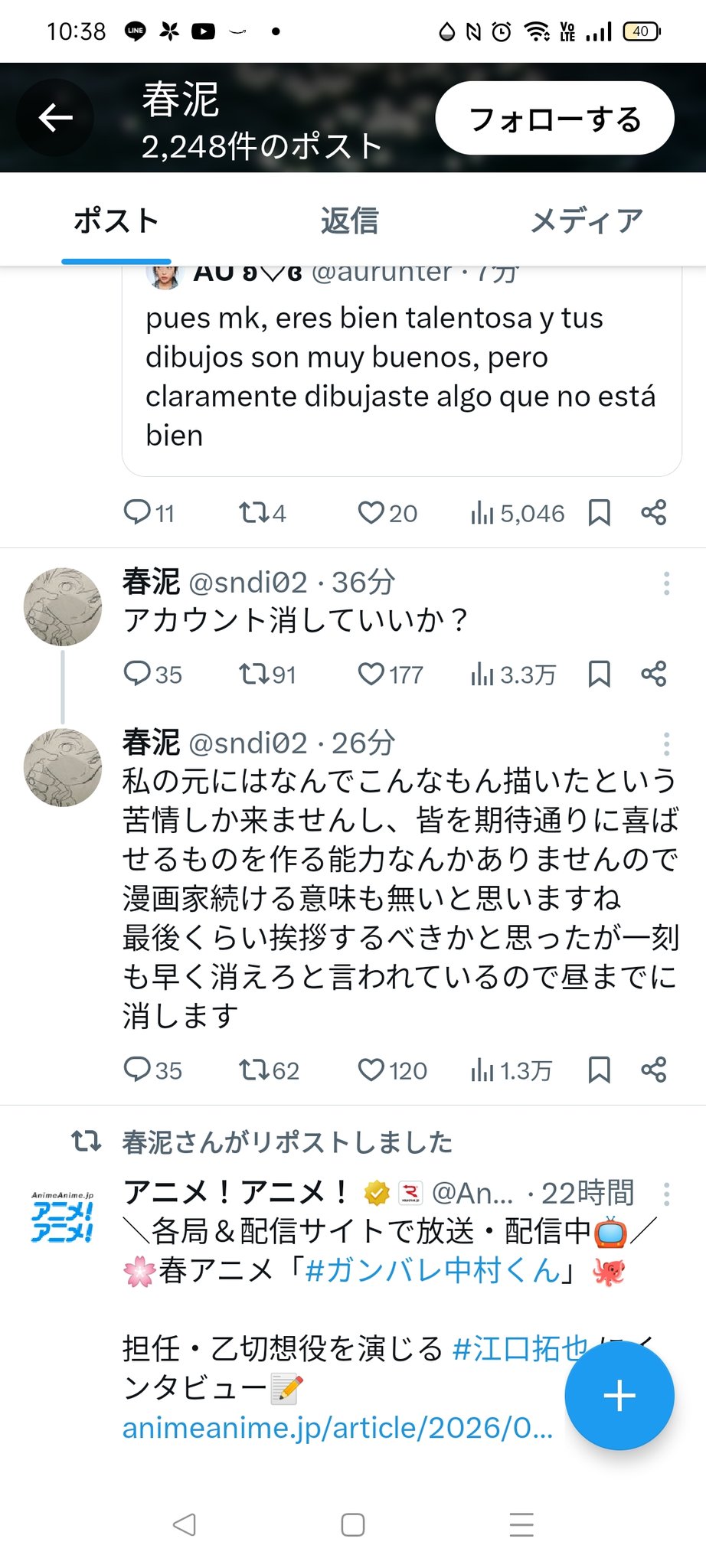 | … | 43826/04/13(月)03:27:25No.1419894963そうだねx2>対抗して垢消すのって |