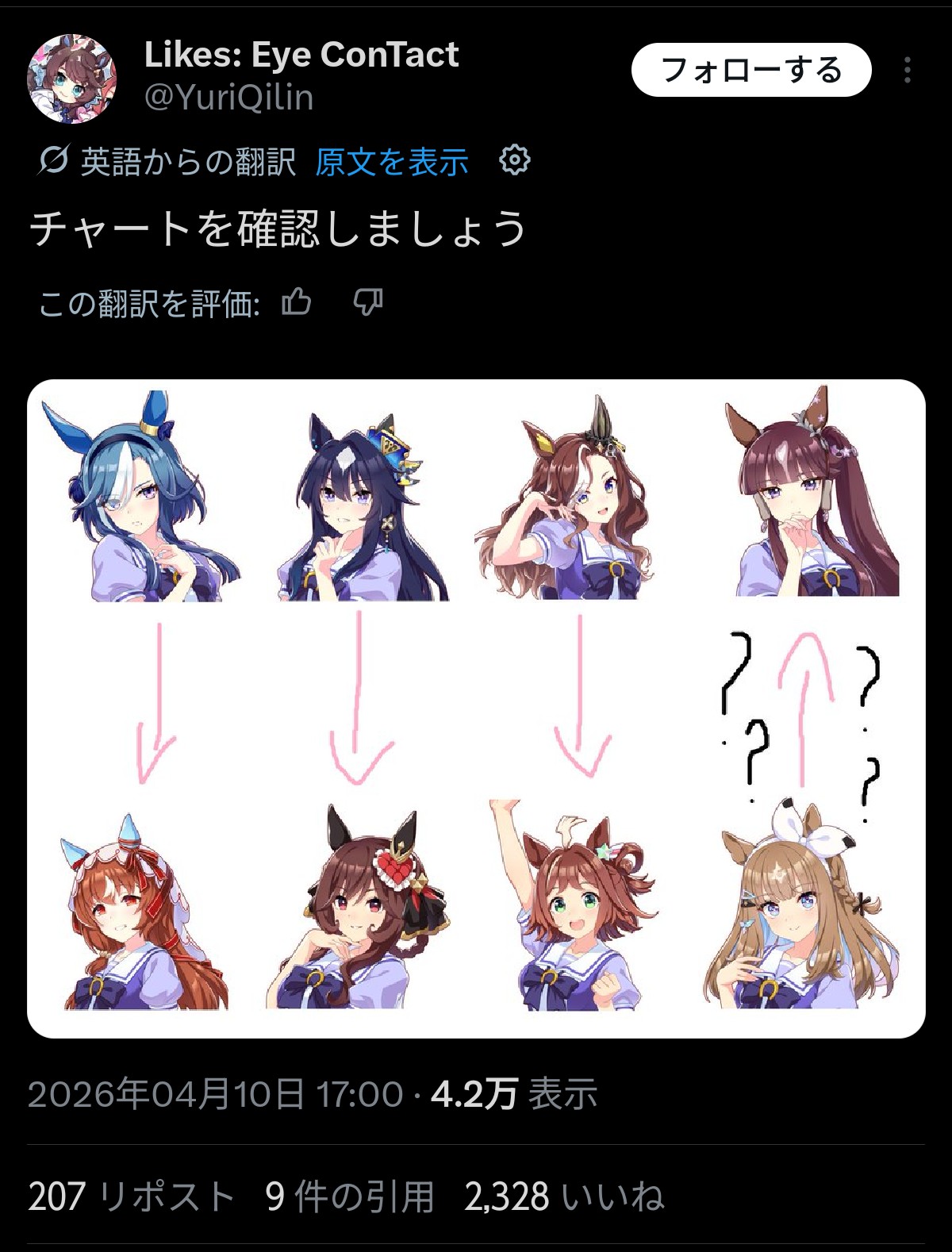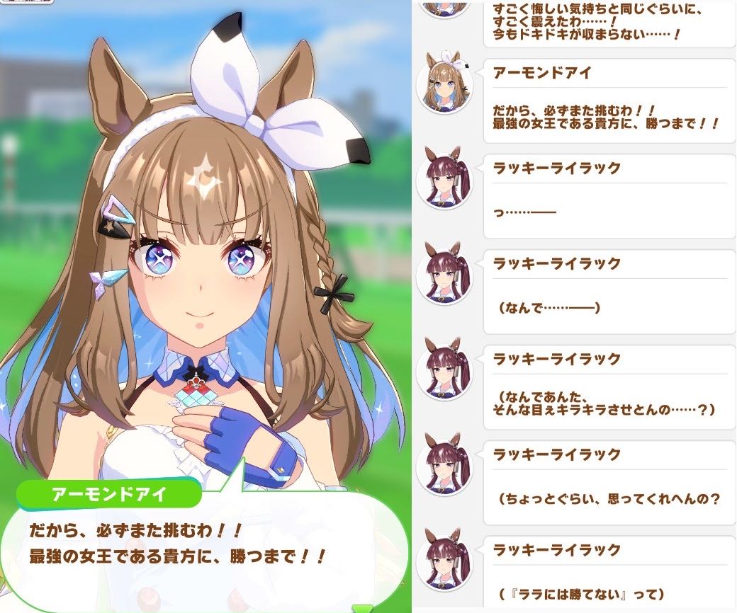 | … | 2826/04/13(月)05:57:12No.1419899695+育成補正で本来のラッキーライラックより輝いてるからな…本当に勝っても負けてもテンションあんま変わらんなアイさん |