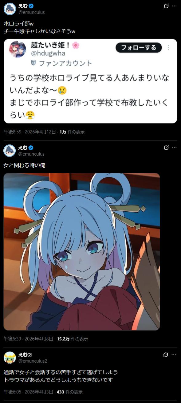 | … | 126/04/13(月)08:50:44No.1419916030そうだねx42えむのついぷりでスレ立てって… |