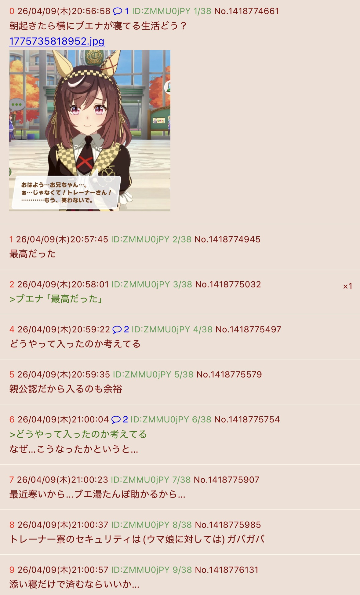 | … | 6026/04/13(月)14:33:21No.1419987786+こいつの目的は「」達にここで特定のネタを話せないようにしてストレスを与えることらしいぞ |