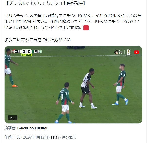 | … | 3726/04/13(月)13:05:07No.1419969367そうだねx13レッドカードに値するジェスチャーってことなのかな。どんな侮蔑の意味があるか、ブラジル人教えて。 |