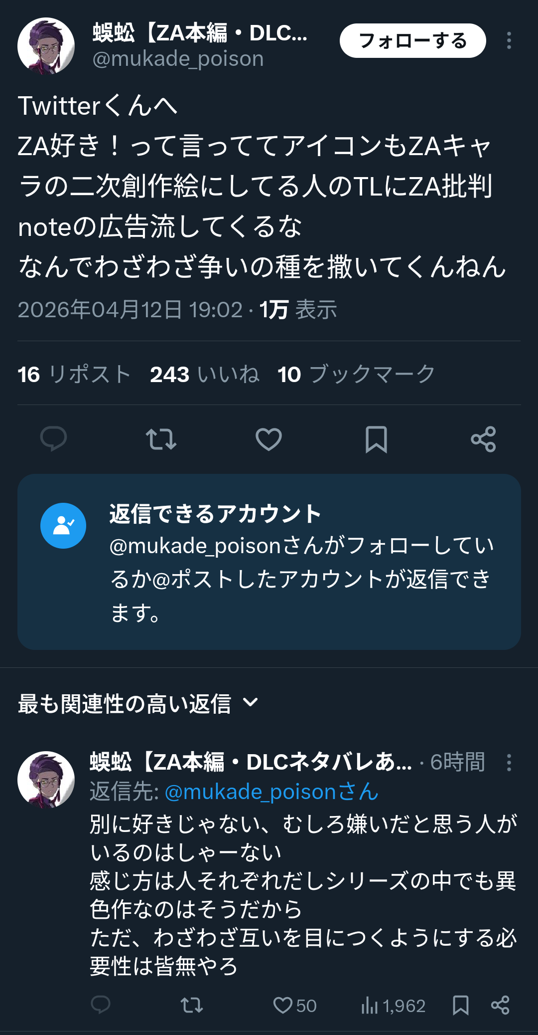 >アンチのポストをおすすめしてくんなってことでしょ