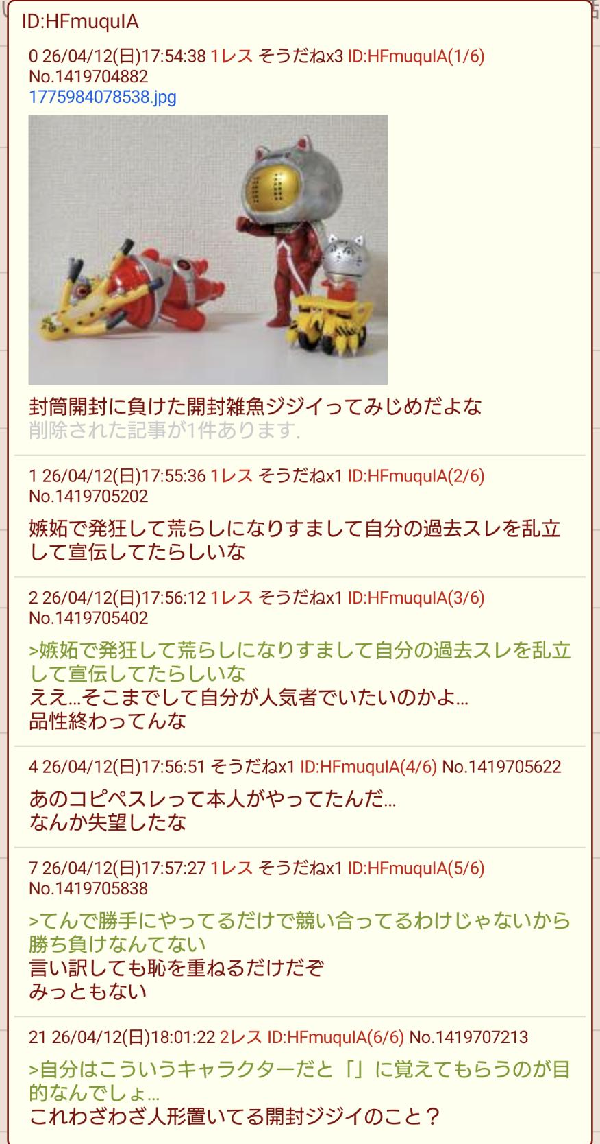 | … | 15926/04/13(月)19:47:19No.1420064534+一番熱心に粘着してるのがおもちゃやウルトラマンなのがおつらい |