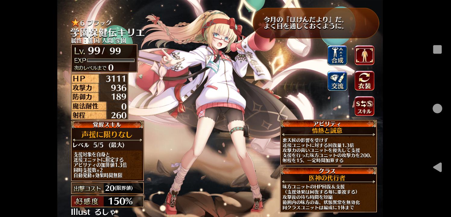 | … | 5226/04/13(月)19:50:15No.1420065741+>書いてあることは割と強いけど編成枠や出撃枠の問題で出せねえなってなるのもメディック |