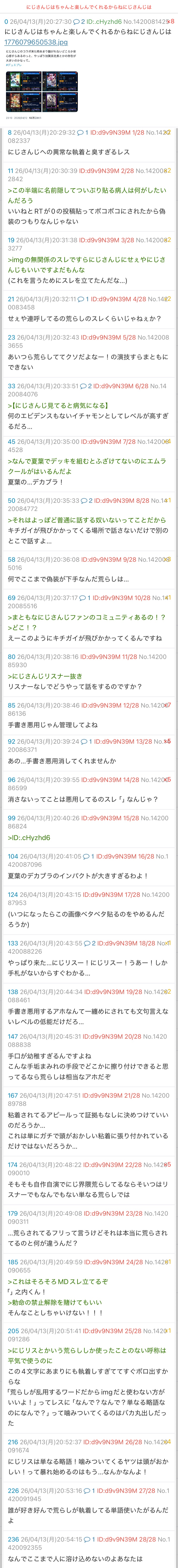 | … | 24026/04/13(月)21:57:51No.1420117836そうだねx4>にじさんじ板がどうこう言うの好きだね… |