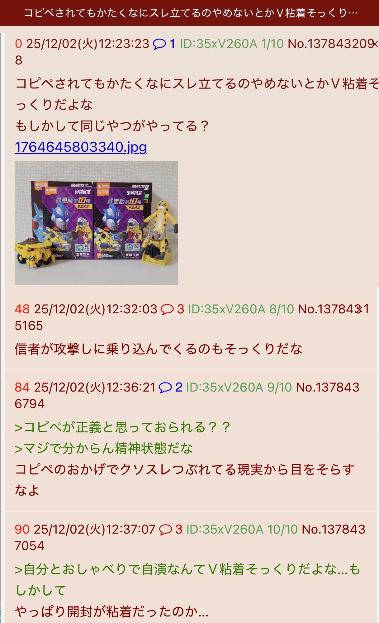 | … | 8826/04/13(月)21:25:19No.1420104965+>恐らくコンバトラーにも粘着すると思われる |