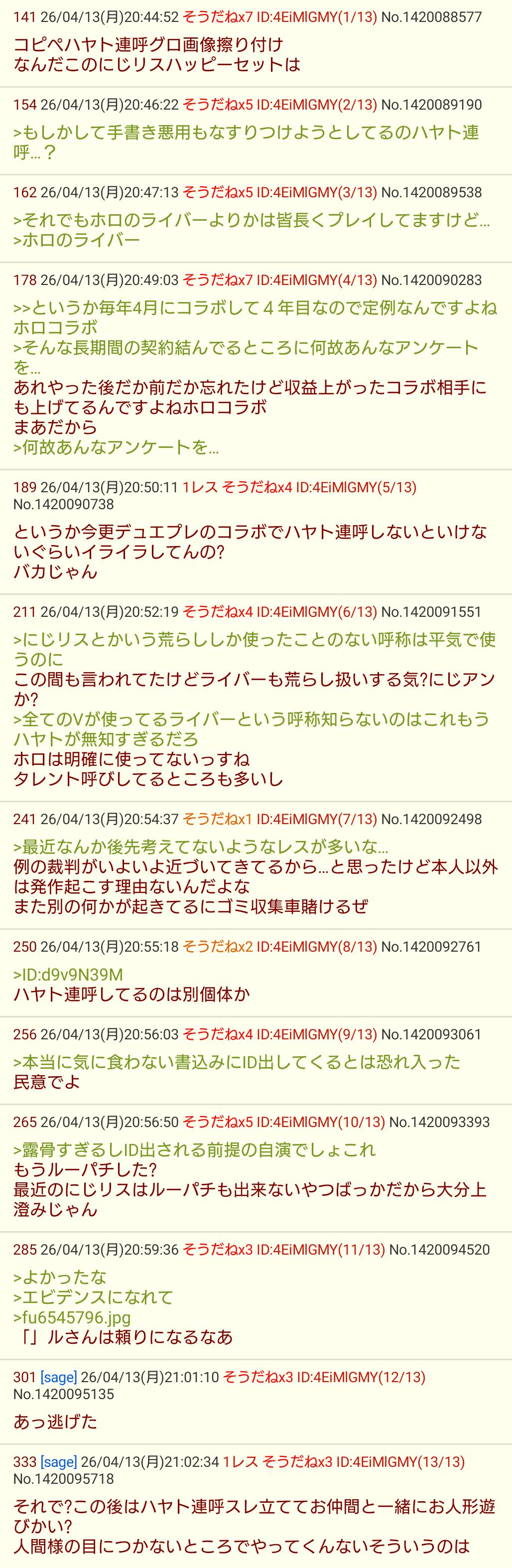 | … | 22626/04/13(月)21:55:31No.1420116972そうだねx3>>このままじゃハヤトよりにじさんじが嫌われるのなんて無理だと思うけど |