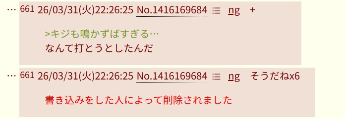 | … | 2126/04/13(月)22:19:04No.1420126089そうだねx3雉板は? |