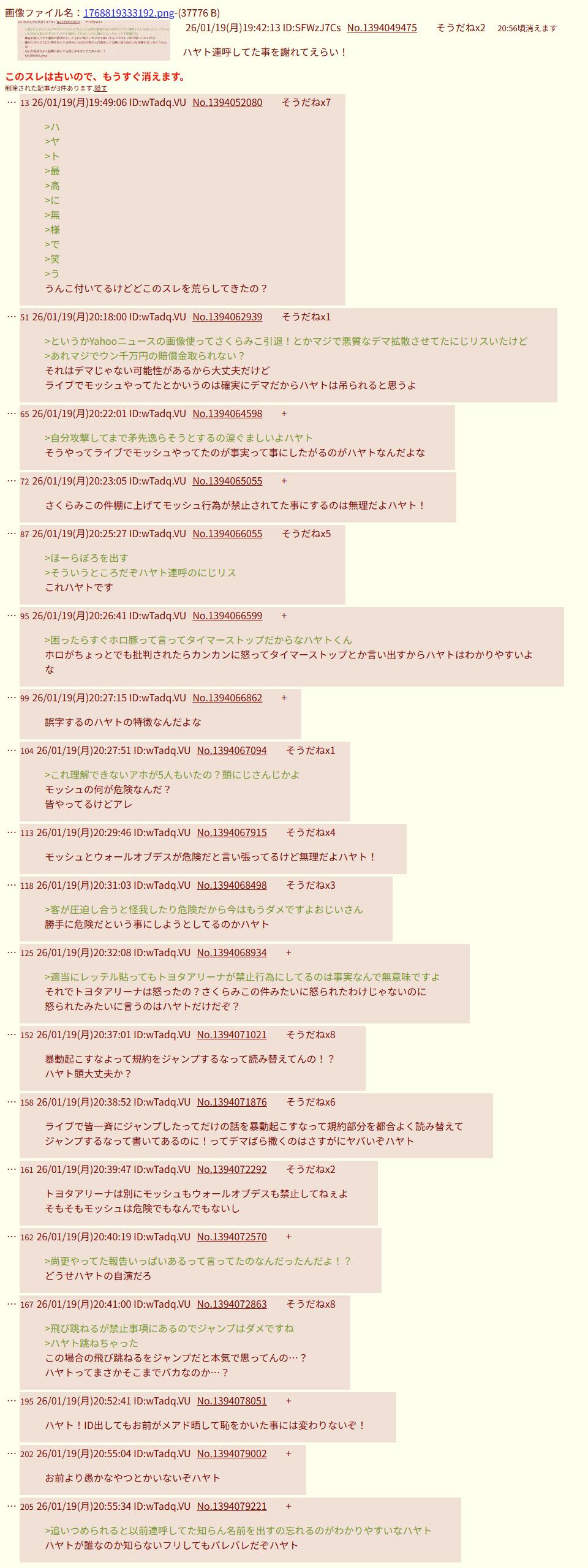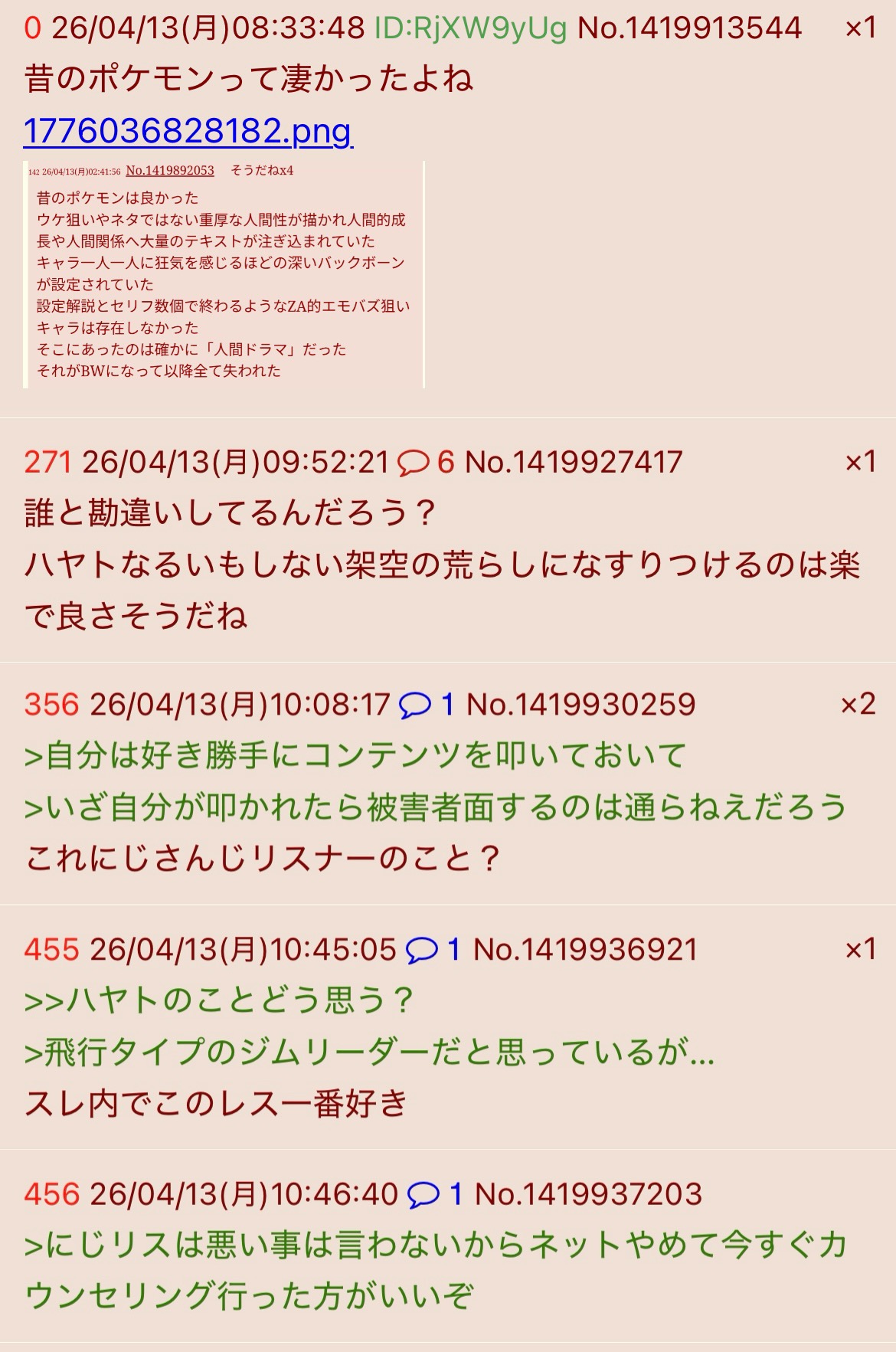 | … | 71526/04/13(月)23:28:40No.1420151975+荒らしに構うやつこそが荒らし |
