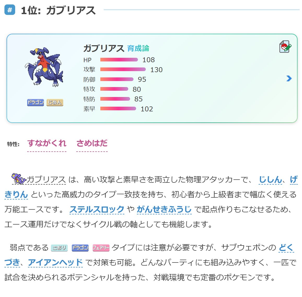 | … | 5926/04/14(火)00:40:32No.1420173454+メガガブリアスはすばやさ下がるだけで使われない? |
