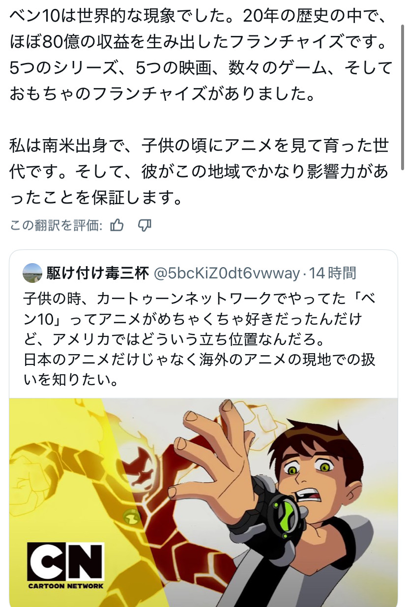 | … | 2526/04/14(火)04:41:41No.1420195631+BEN10は一時期周辺展開を日本導入しようと頑張ってる雰囲気があったので印象に残ってる人は多いと思う |