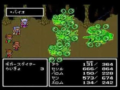 | … | 7326/04/14(火)08:52:32No.1420213434+FF4のバイオは毒じゃなくて厳密には体内の細菌を増殖活性化する魔法 |