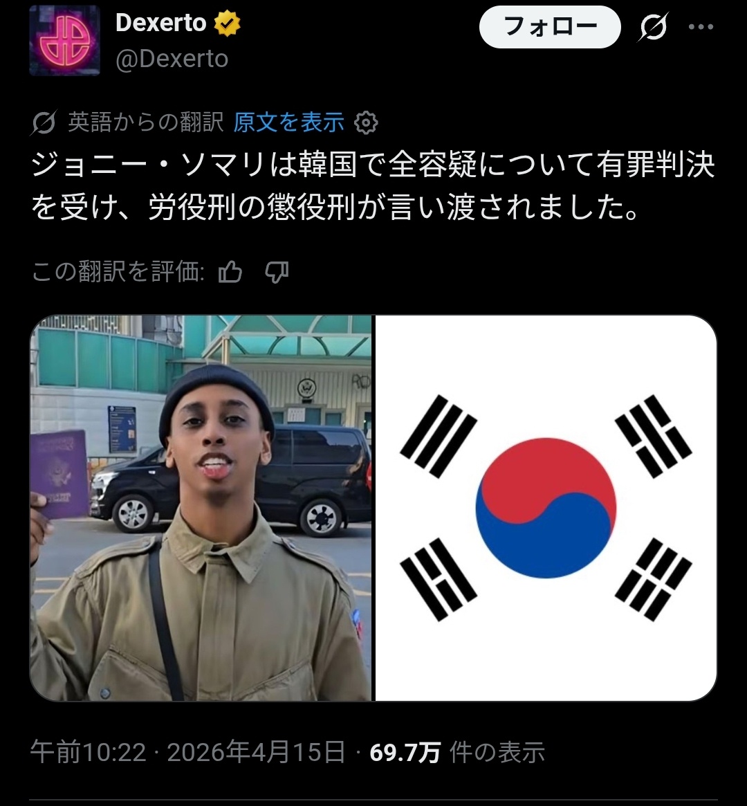 | … | 2626/04/15(水)12:05:22No.1420541411+韓国にいたのか…もう母国に帰ればいいのに |