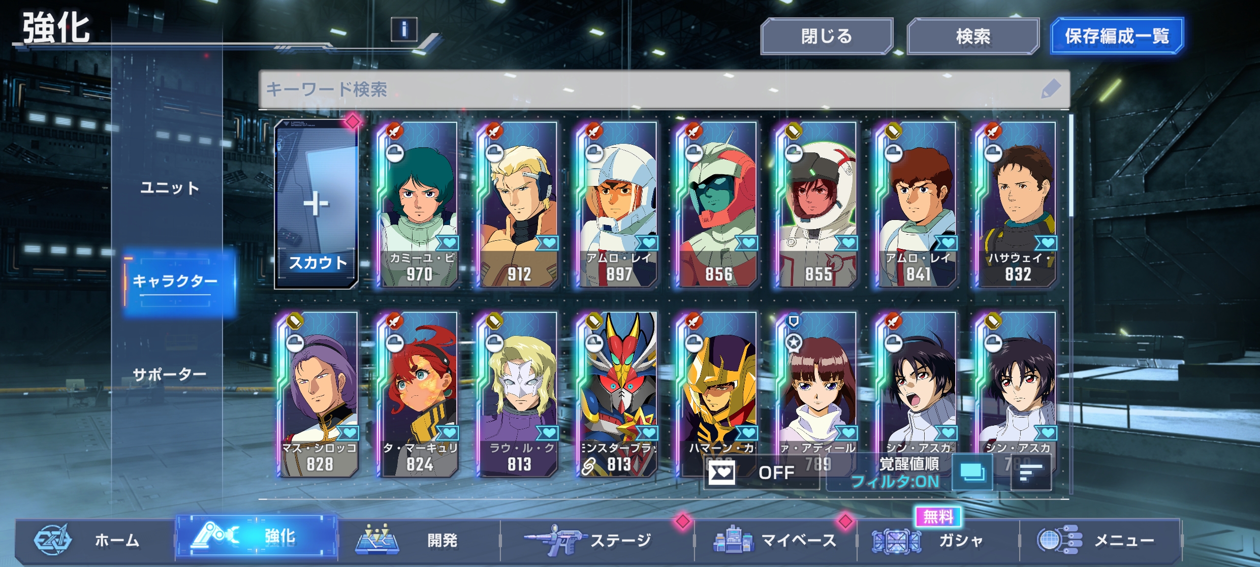 | … | 6926/04/15(水)17:07:55 ID:5NCHOfMUNo.1420609726+そも覚醒値900超えてるのがうちのだとカミーユと総帥だけなんだけど |