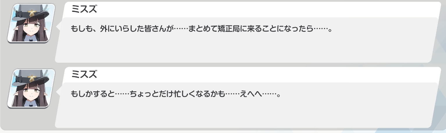 | … | 9326/04/15(水)20:22:37No.1420667286+>ミスズは矯正局の堅牢さに自信を持ってるようだけど |
