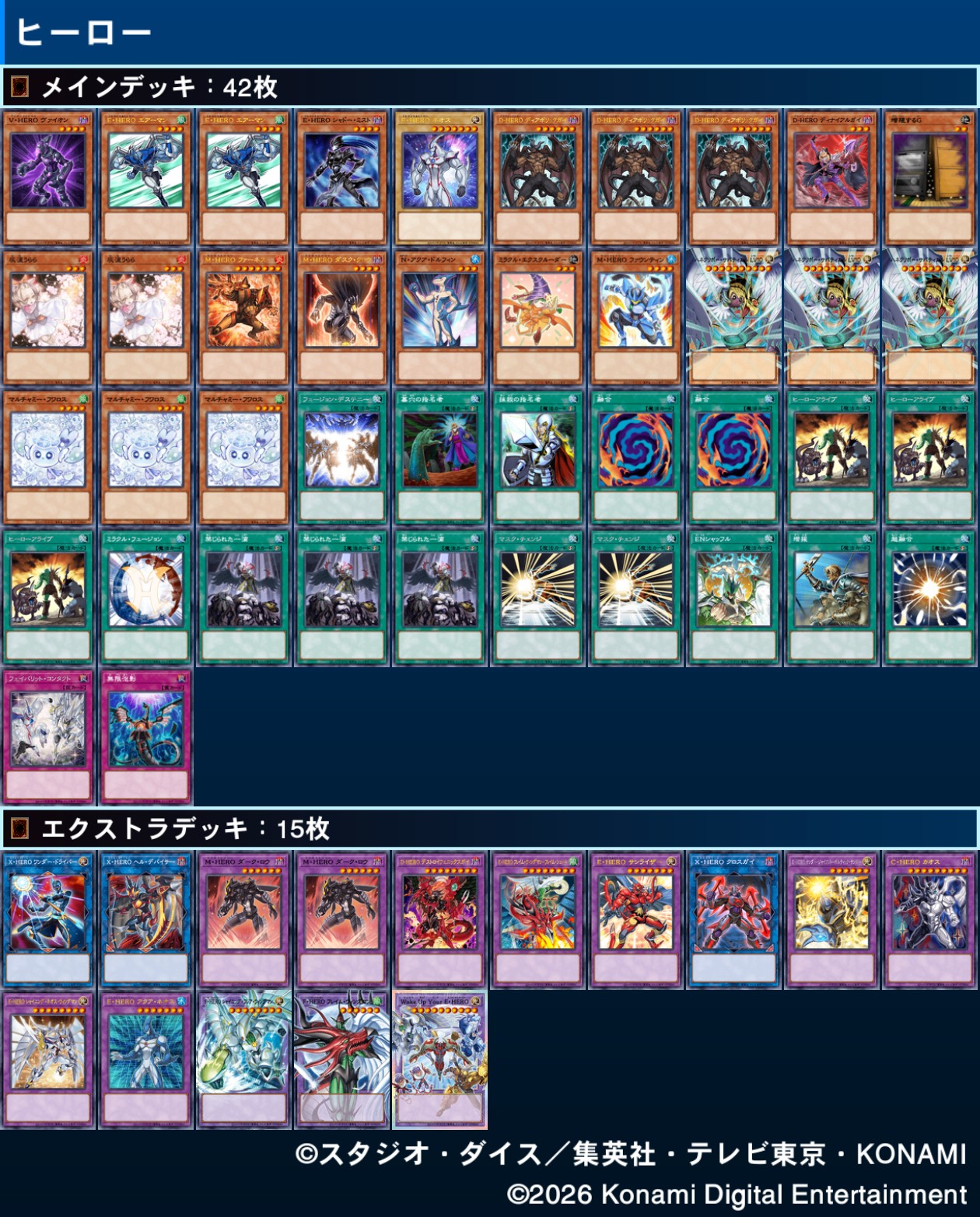 友達のHERO有識者にヒーローデッキを組んで貰ったんだけどこのスレは古いので、もうすぐ消えます。