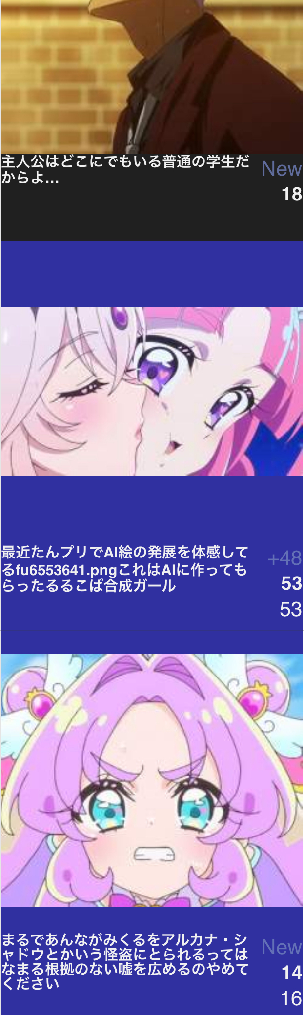 | … | 4626/04/15(水)22:22:51No.1420716198そうだねx3>ガチ泣きしてあんなにやめてと縋り付くキュアアルカナ |