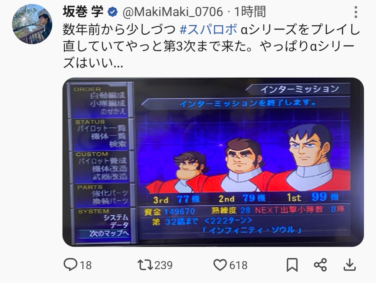 たまにとんでもないことになるよねスパロボのインターミッション画面このスレは古いので、もうすぐ消えます。