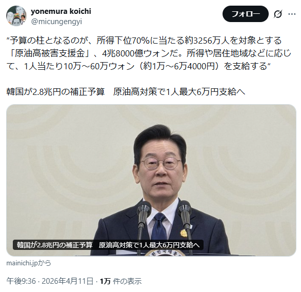 | … | 426/04/16(木)00:24:03No.1420757815そうだねx3優先購買權あったのにむざむざ持っていかれた石油の負担を税金で! |