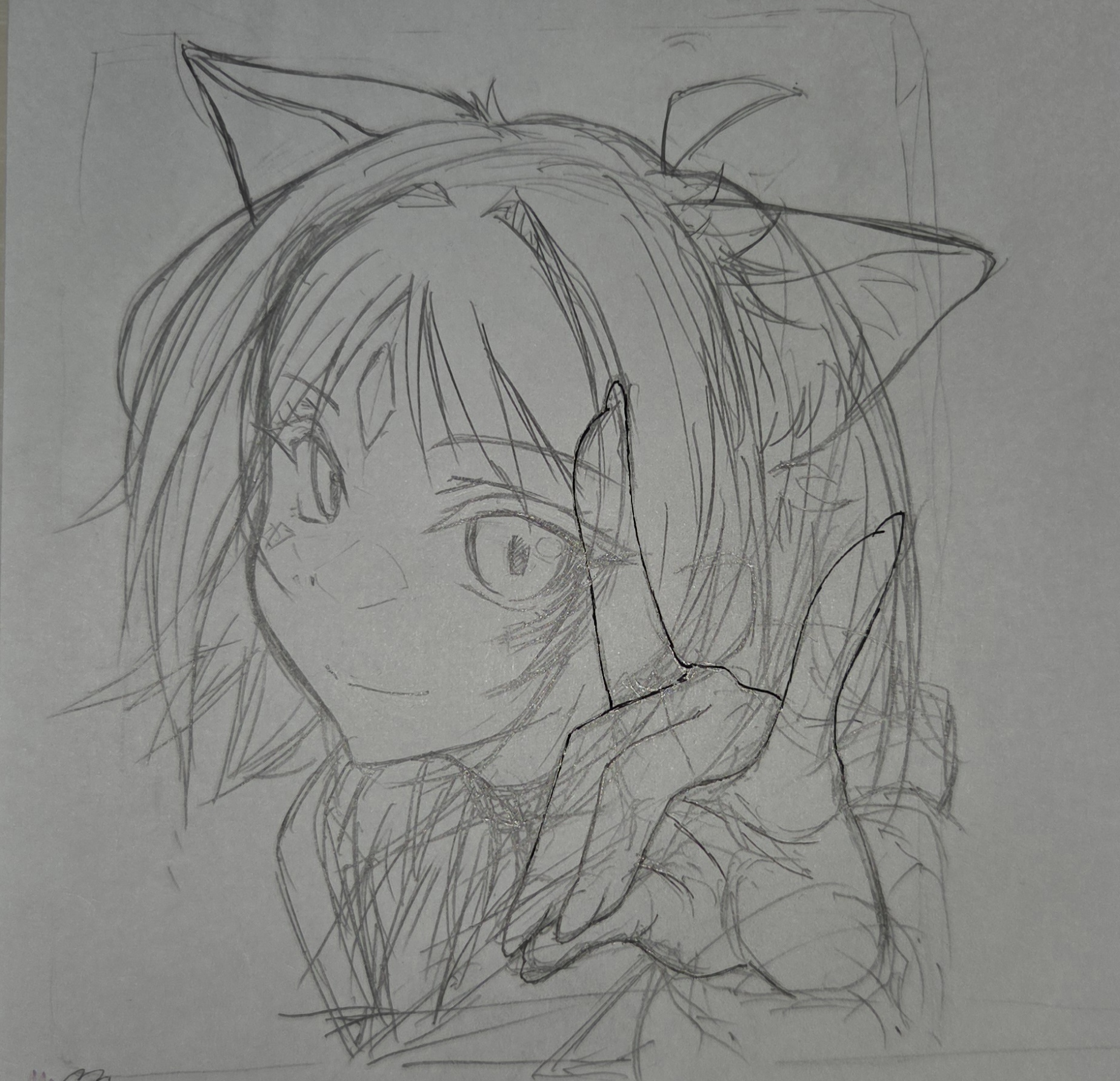 | … | 3526/04/16(木)02:07:17No.1420777262そうだねx6久しぶりにアナログで描いてるけど顔の輪郭はいまだにこれってパターン決まってないわ |