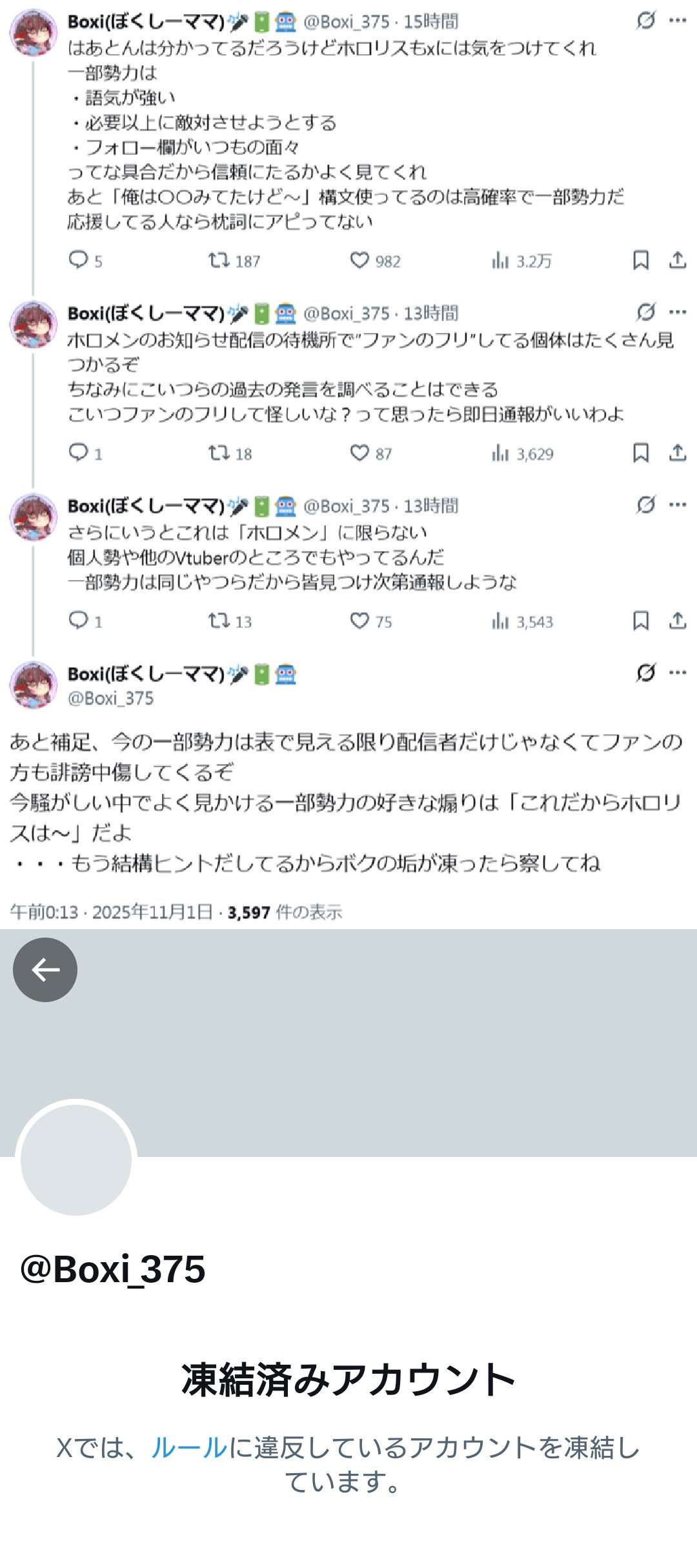これで大量通報されてないっていうならなんで凍結されたんだろう