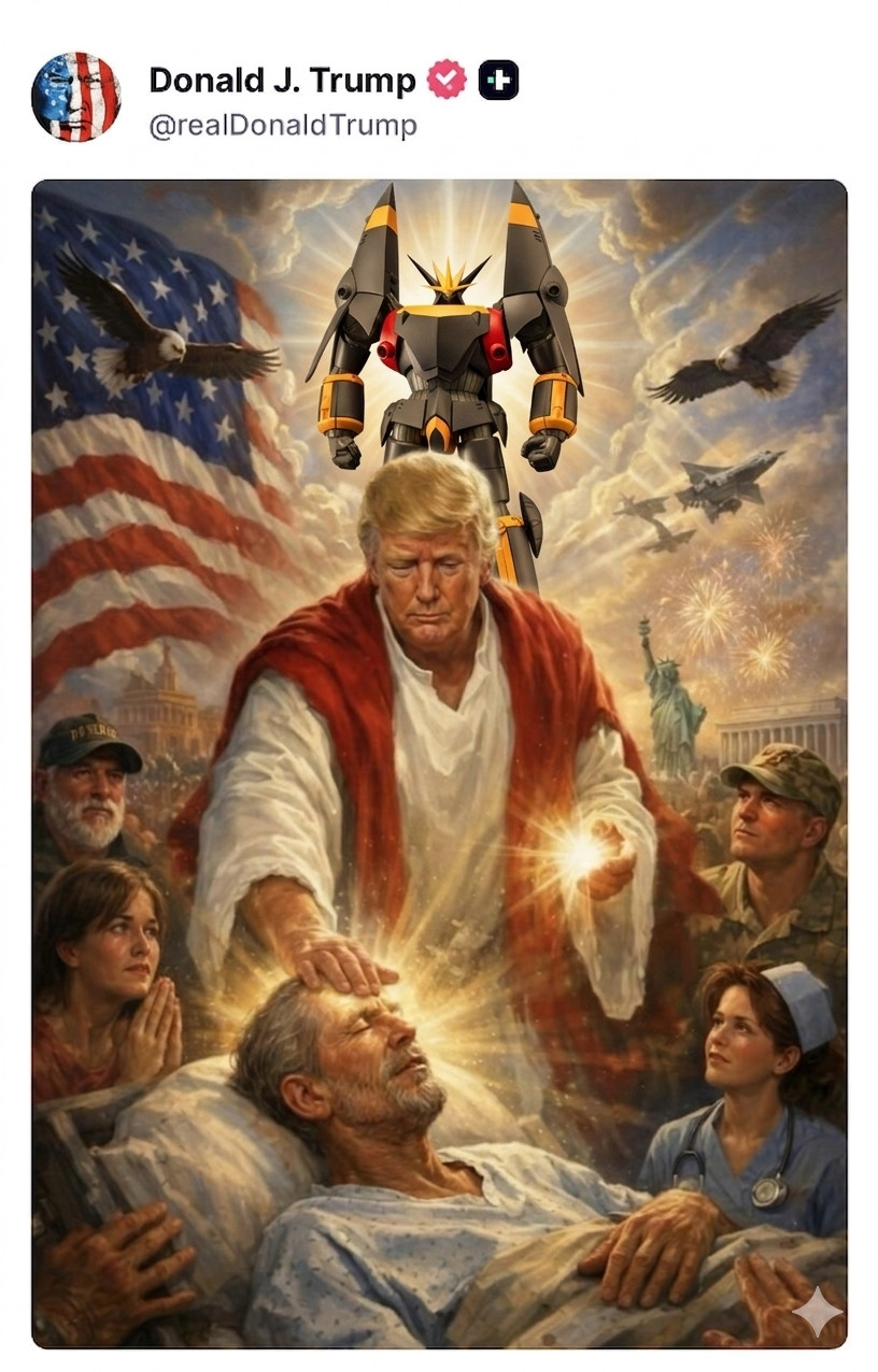 >昨日トランプ本人がキリスト化してるAI画像を投稿してさすがに支持者の福音派からめっちゃ批判が出たから