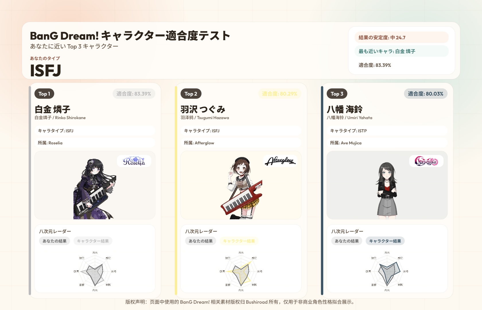 https://www.bangdream-mbti.cn/このスレは古いので、もうすぐ消えます。
