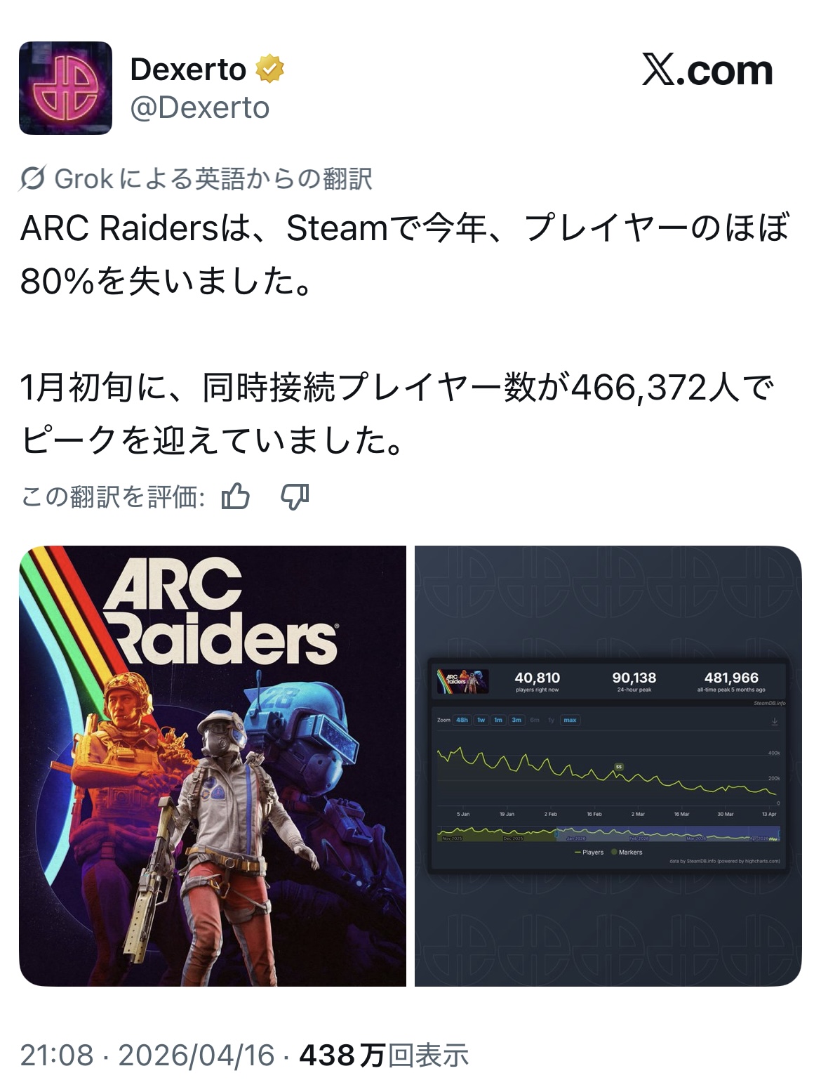 デイリーピーク9万、リアルタイムインゲーム4万ってめちゃくちゃ多いぞ?