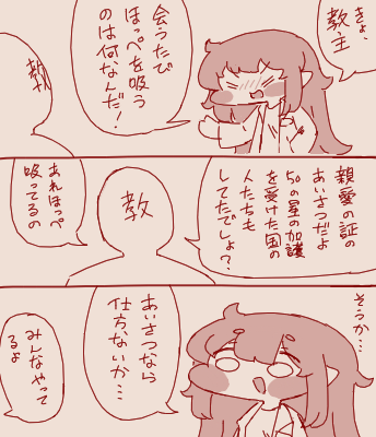| … | 6326/04/17(金)12:03:47No.1421112298+ほっぺ吸いって本国教主もやってるの? |