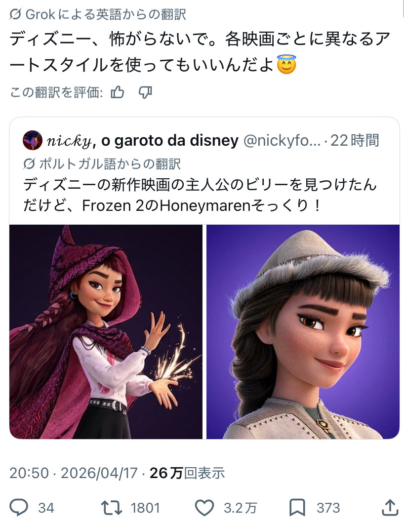 | … | 526/04/18(土)06:40:50No.1421373078そうだねx19>ディズニーのキャラデザって本当に毎回つまんないよな |