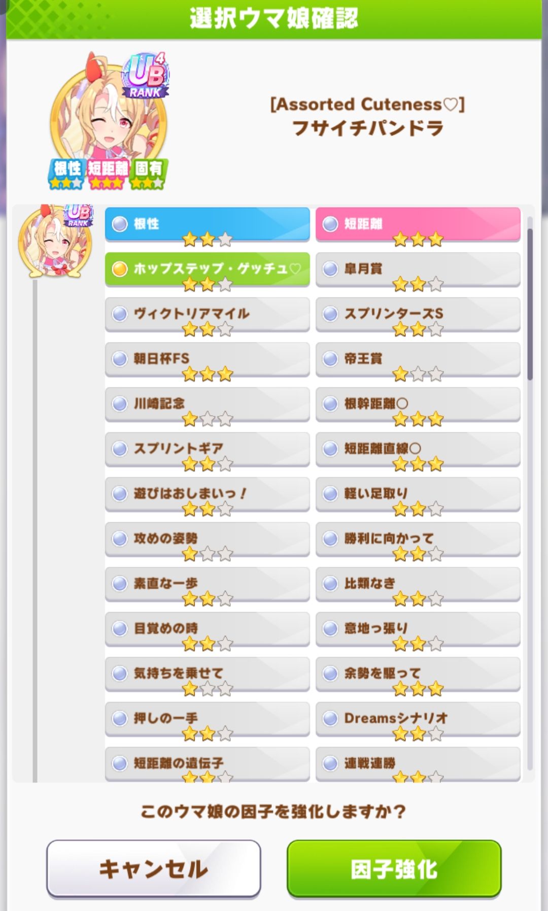 | … | 38726/04/18(土)15:38:30No.1421483611そうだねx1使えそうな短距離ママ因子が出来たわ… |