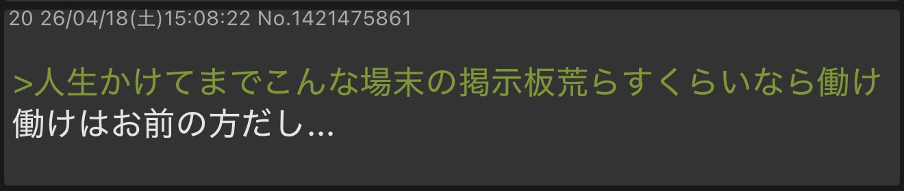 | … | 2626/04/18(土)15:14:21No.1421477278そうだねx1はい隔離ネギトロパンパース |