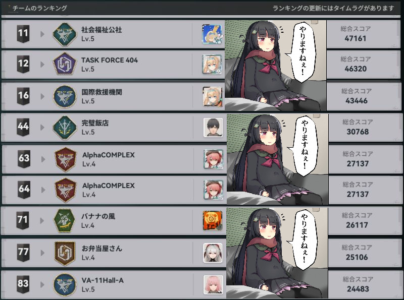 | … | 11026/04/18(土)20:46:28No.1421584925+朝早く起きて日課済ませてたら急にチームが実装されててスレが盛り上がってたな |