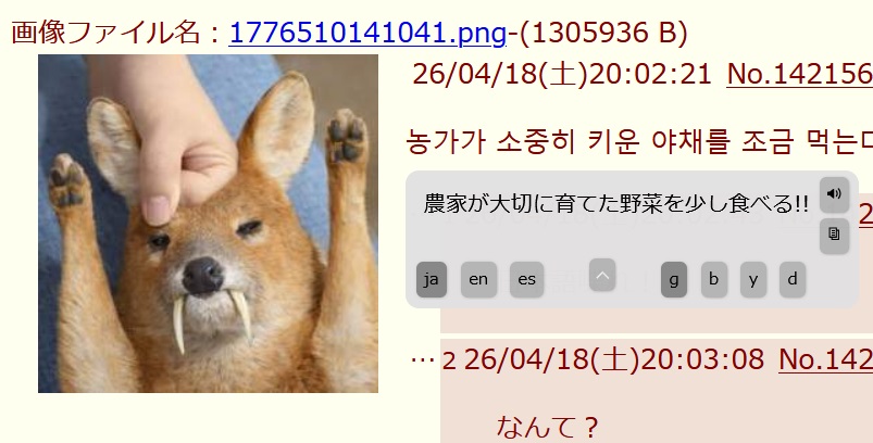 | … | 63226/04/18(土)20:58:18No.1421590144+でも고라니はimgで大人気だし… |