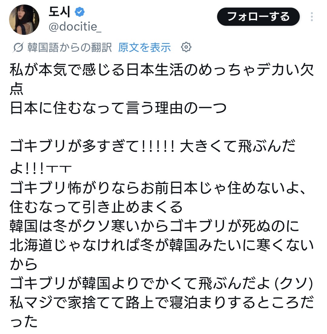 | … | 9026/04/19(日)00:20:08No.1421672436そうだねx1>岩手に住んでるけどゴキブリなんか全然見たことないよ |