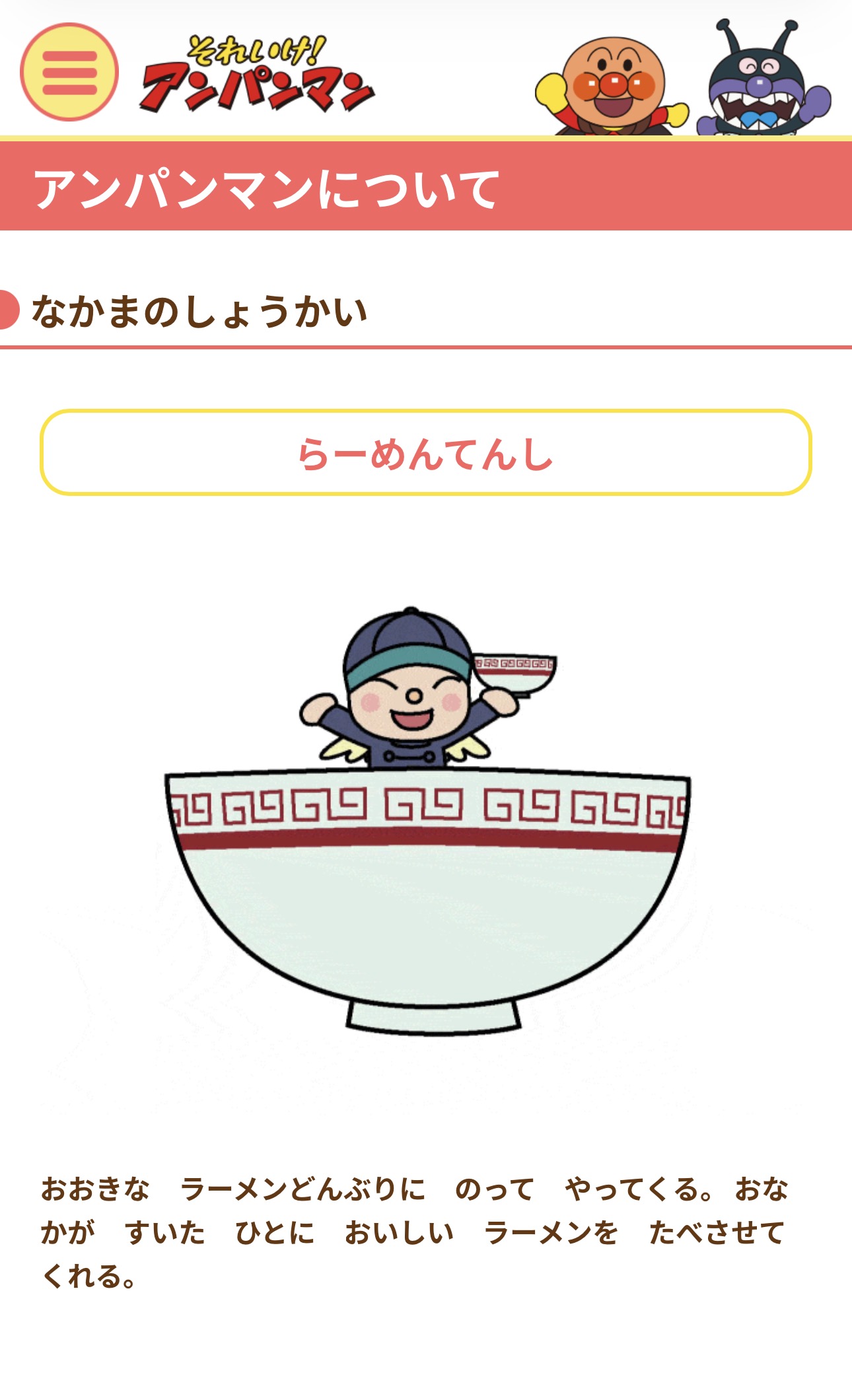 | … | 1326/04/19(日)00:34:01No.1421676512+アンパンマンの公式サイト見たらどんぶり系のキャラこいつら以外にもいるんだな… |