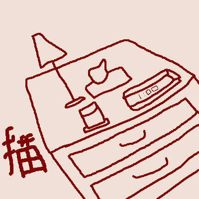 ベッドサイドテーブルの上に何があるか見せて 描いて