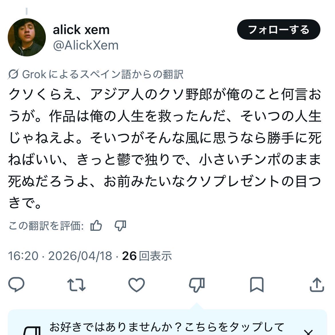 | … | 2626/04/19(日)10:55:01No.1421765332そうだねx7>でも言ってることは事実だよ… |