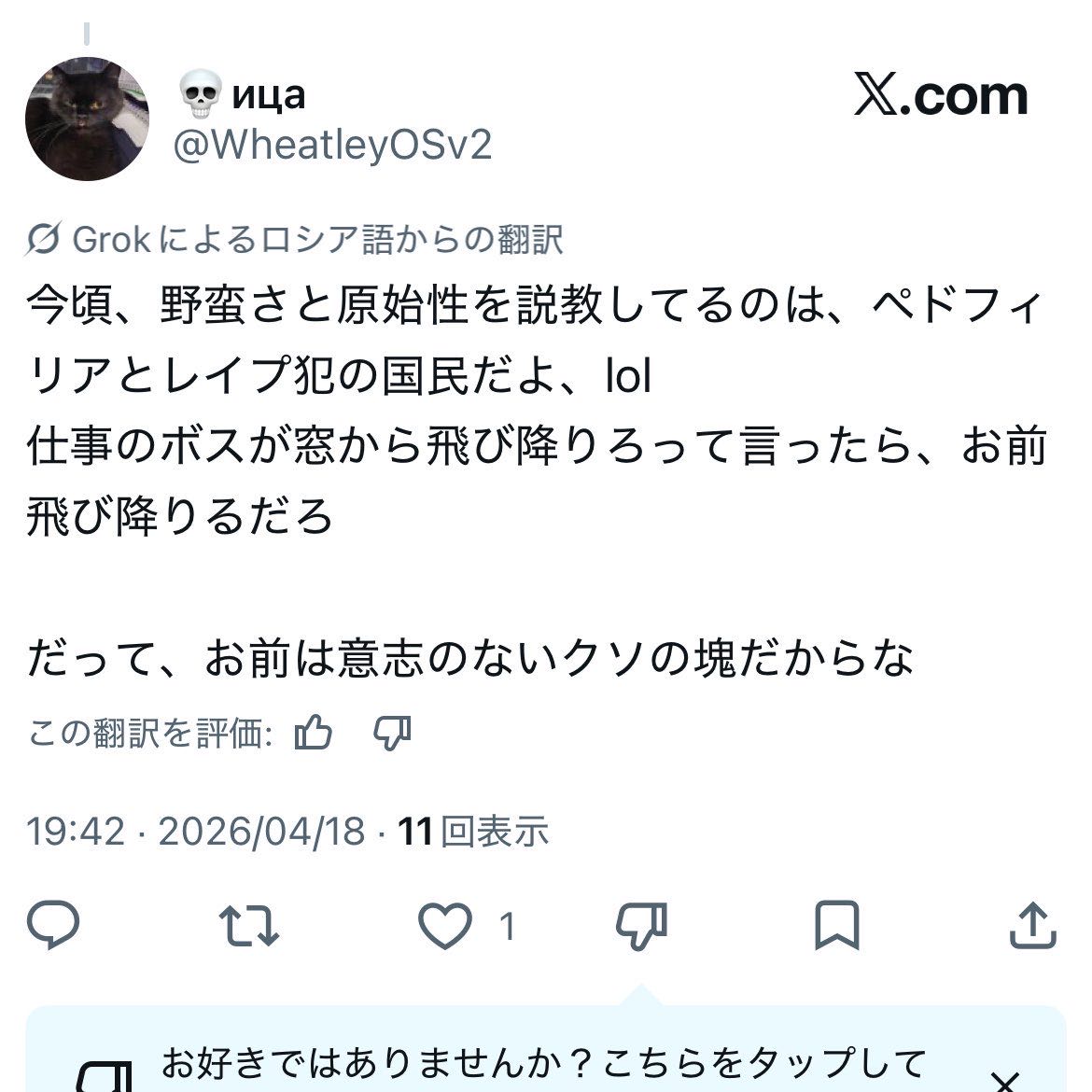 | … | 6026/04/19(日)11:06:50No.1421768401+アイツらもやってる俺だけじゃないみたいな話しても普通に正常な人に殴り殺されるだけだからよした方がいいのにな |