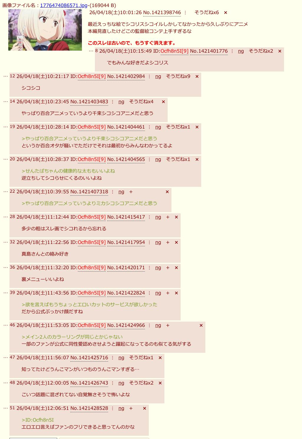 | … | 1026/04/19(日)13:19:26 ID:KH.L3ei.No.1421804823+たわけた覚悟だ… |