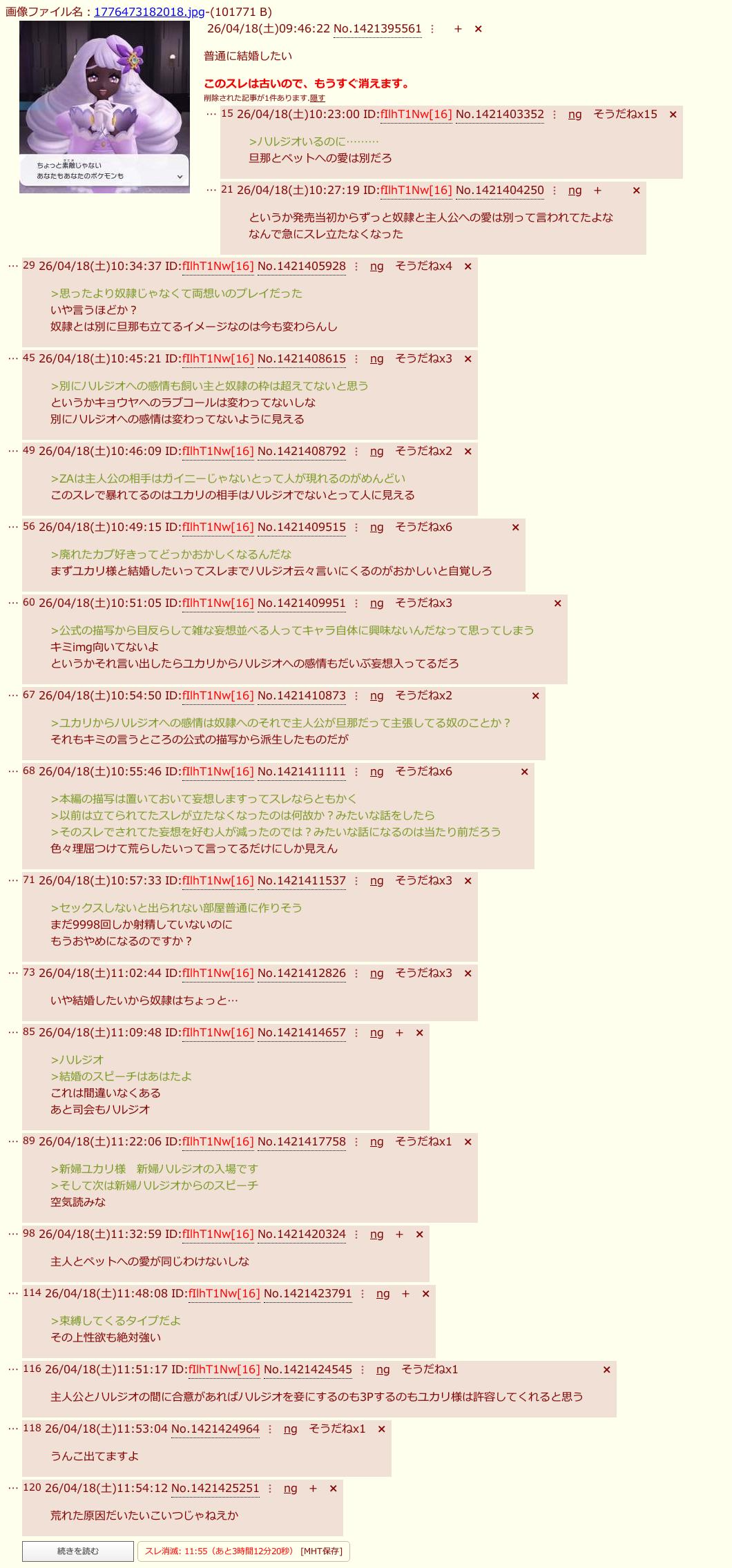 | … | 1126/04/19(日)13:19:33No.1421804863+スレッドを立てた人によって削除されました |