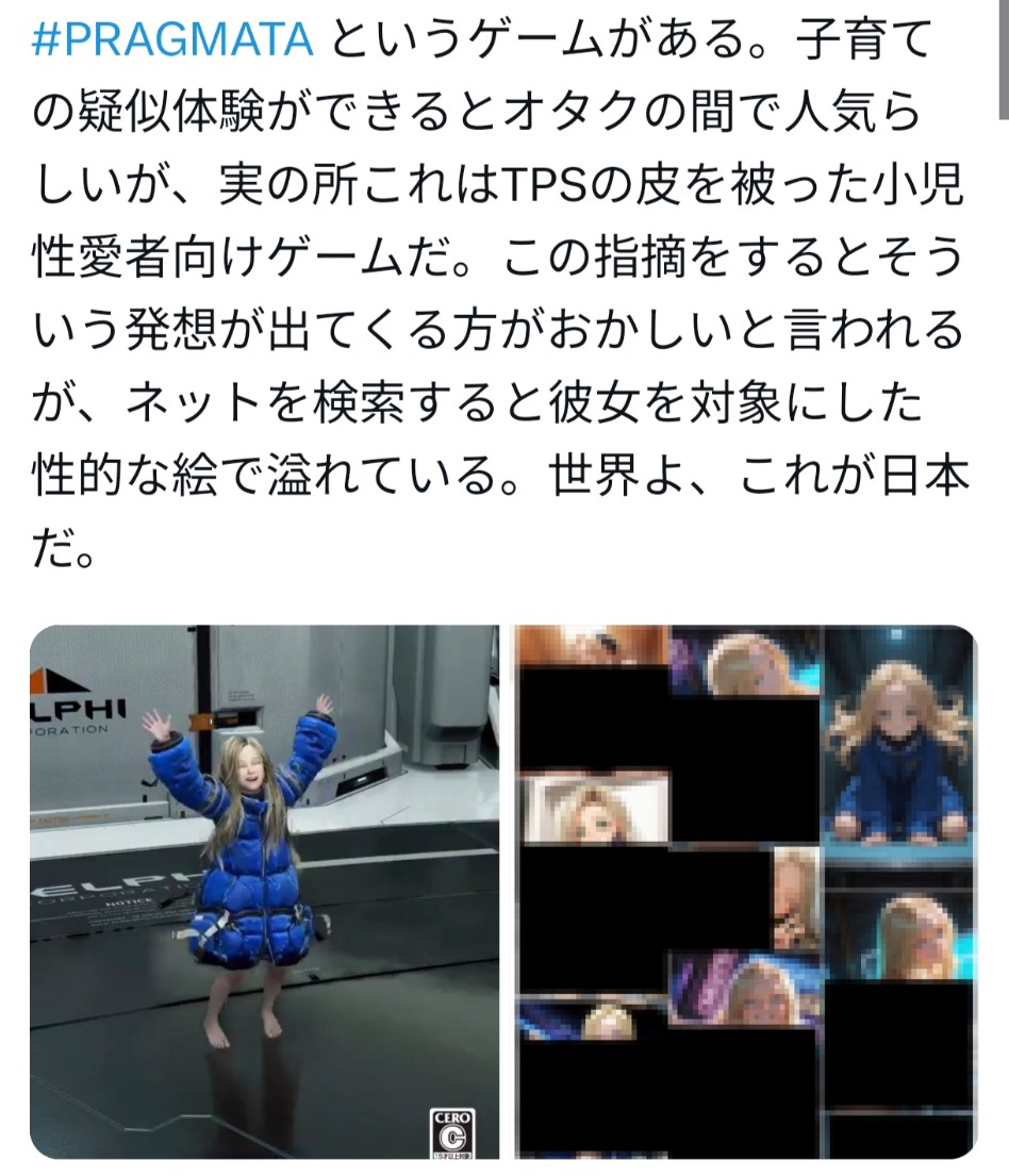 | … | 4226/04/19(日)17:18:56No.1421871606+小児愛者から性的な目で見られているものを小児愛者向けとすると現実の児童も小児愛者向けということになる |