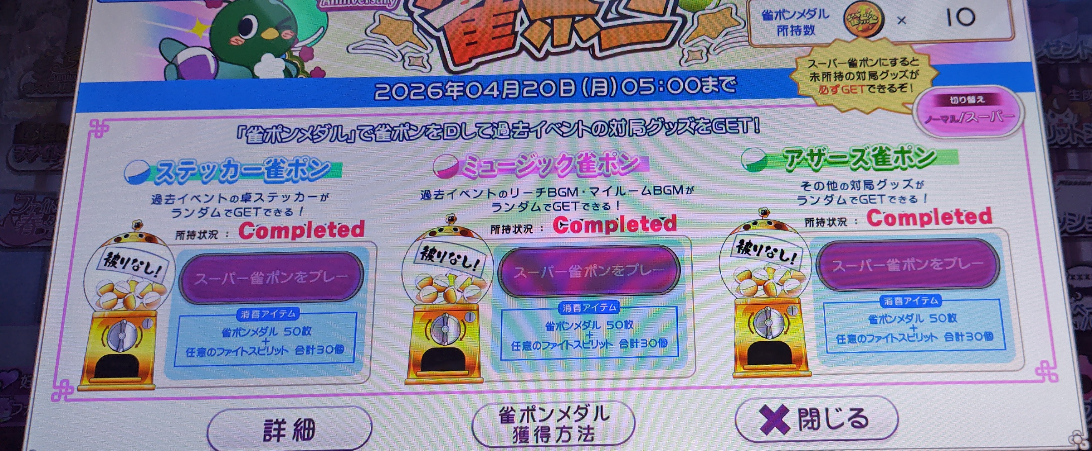 | … | 2326/04/19(日)18:28:50No.1421891877そうだねx1>BGM雀ポン0から79まで行ったからありがたいイベントだったッピ |
